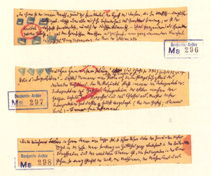 ![]() Manuscrit de Walter Benjamin Travail préparatoire au Franz Kafka (1934) Walter Benjamin Archiv, Akademie der Künste, Berlin |