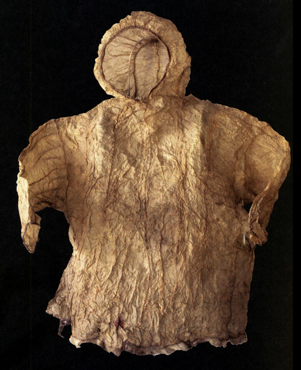 | Parka en intestin de phoque, imperméable, utilisée pour la chasse et la pêche. c. 1860, Alaska |